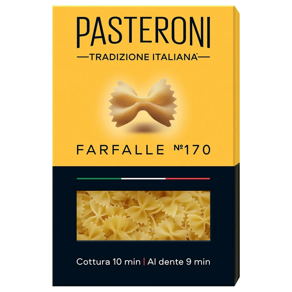 Фарфалле Pasteroni изготовлены из муки твердых сортов пшеницы с сохранением