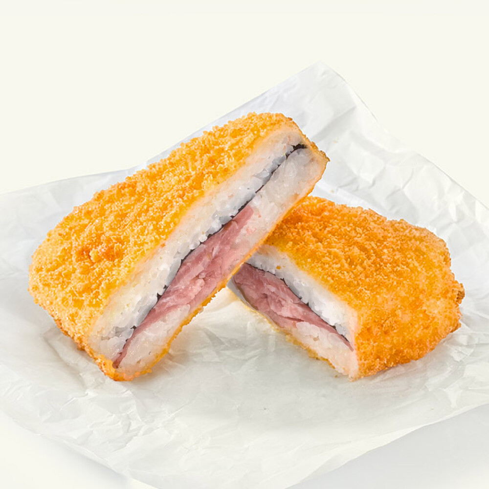 Японский сендвич, обжаренный во фритюре с хрустящей корочкой и начинкой из бекона со сливочным соусом.