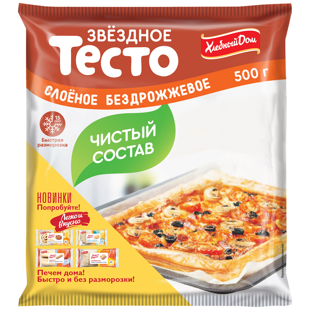 Тесто слоеное бездрожжевое 175х175х5 мм (пласт 500г х 16 шт) Звездное зам. - 65030580