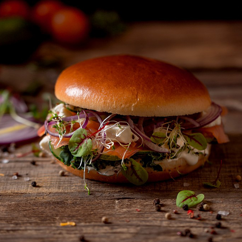 Булочка для бургера Картофельная выпекается по специальному рецепту с добавлением натуральных картофельных хлопьев и молока, что делает ее сдобной и мягкой. Слегка неровная глазированная шляпка придает булочке премиальный и крафтовый вид - как будто она сделана вручную.