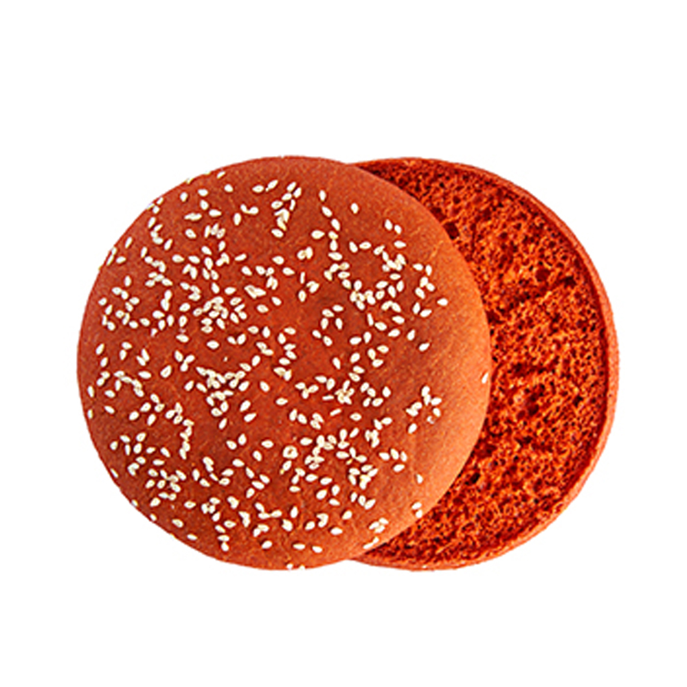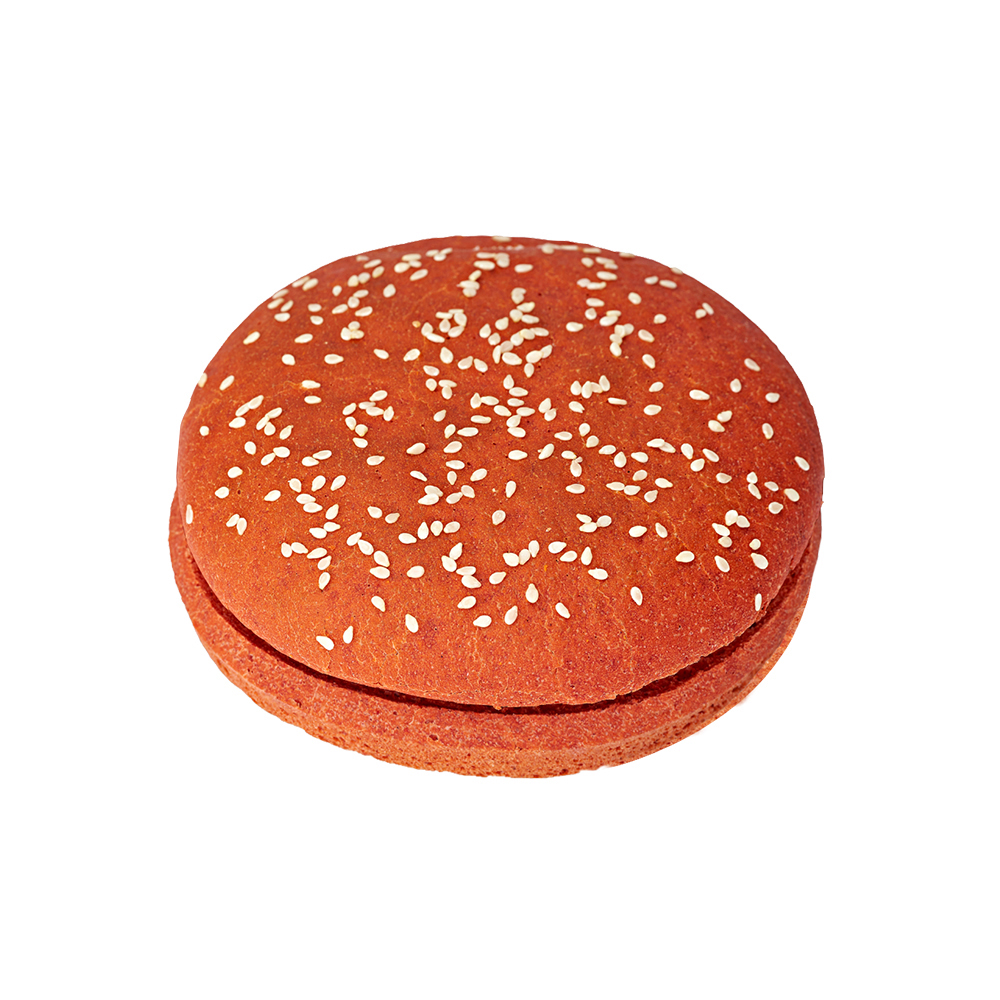 Булочка Чили выпекается с добавлением перца чили, паприки, экстракта свеклы и томатов. Добавляет бургеру оттенок экзотики и пикантную, ненавязчивую остроту.