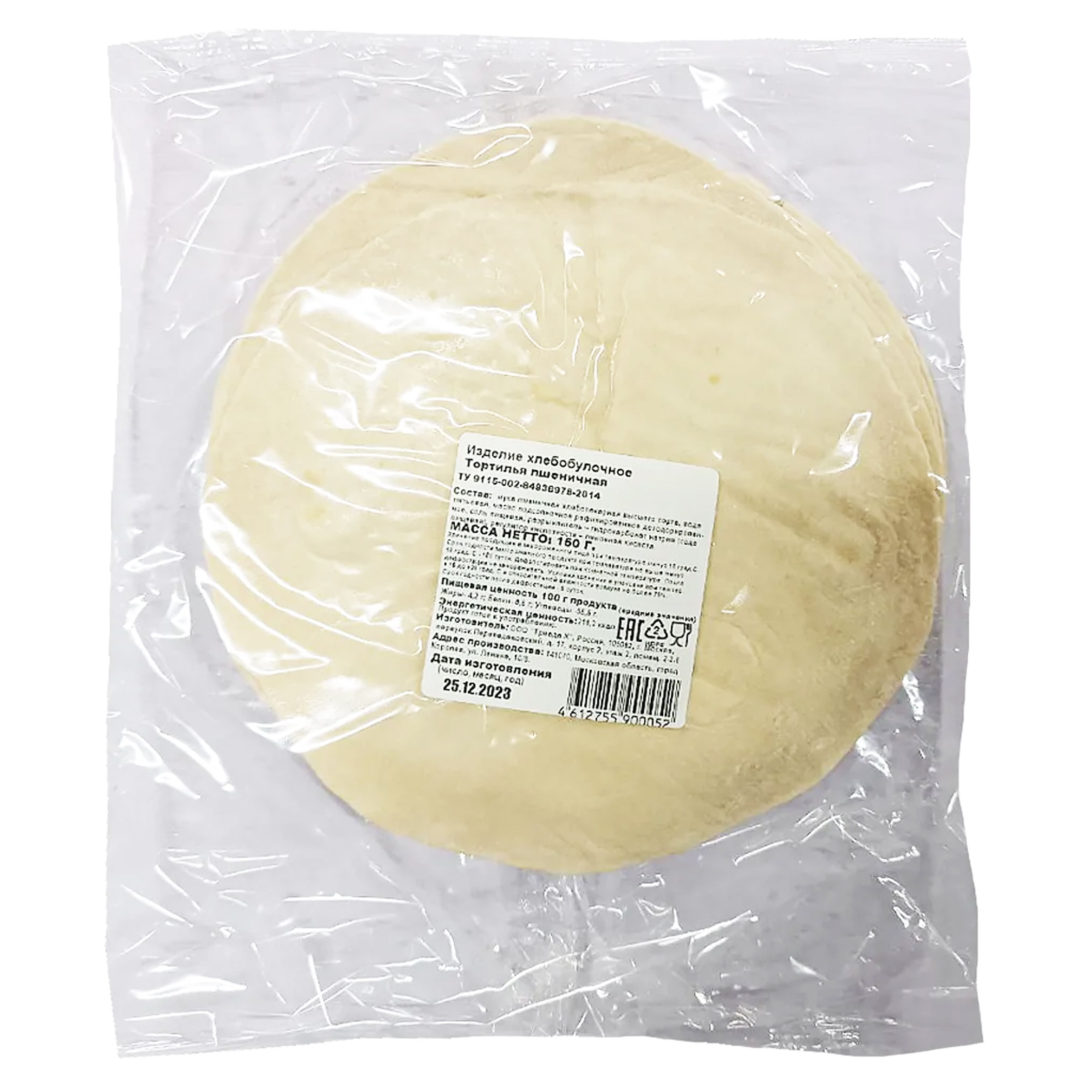 Тортилья d 6,5-дюйм (16,5 см) пшеничная (1 кор/60 шт) зам.