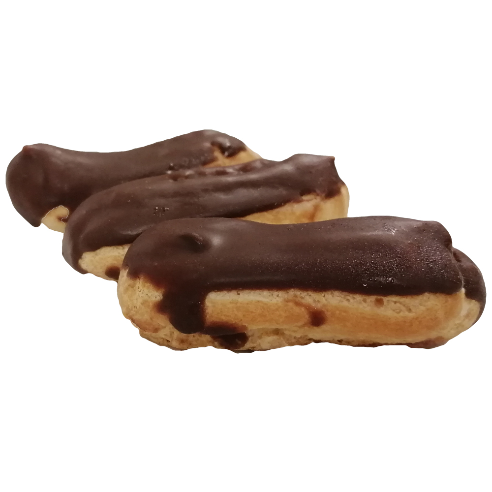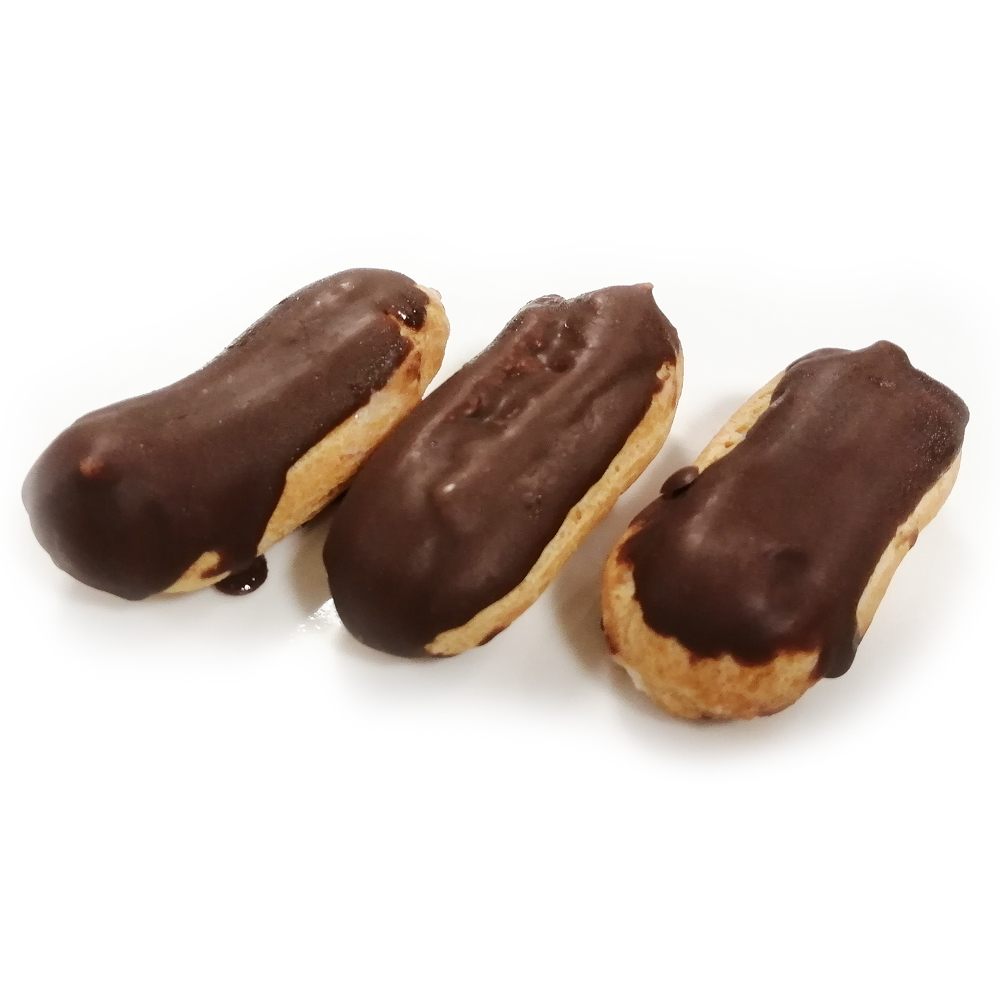 Длина эклера 6-7 см., фасуются по 3 шт.
