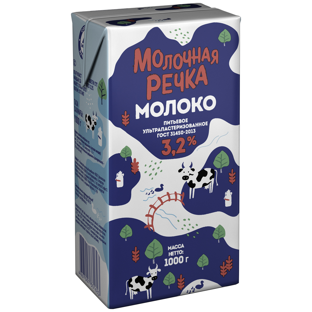 Молоко ультрапастеризованное 3,2% Молочная Речка 1000г - 1704043810