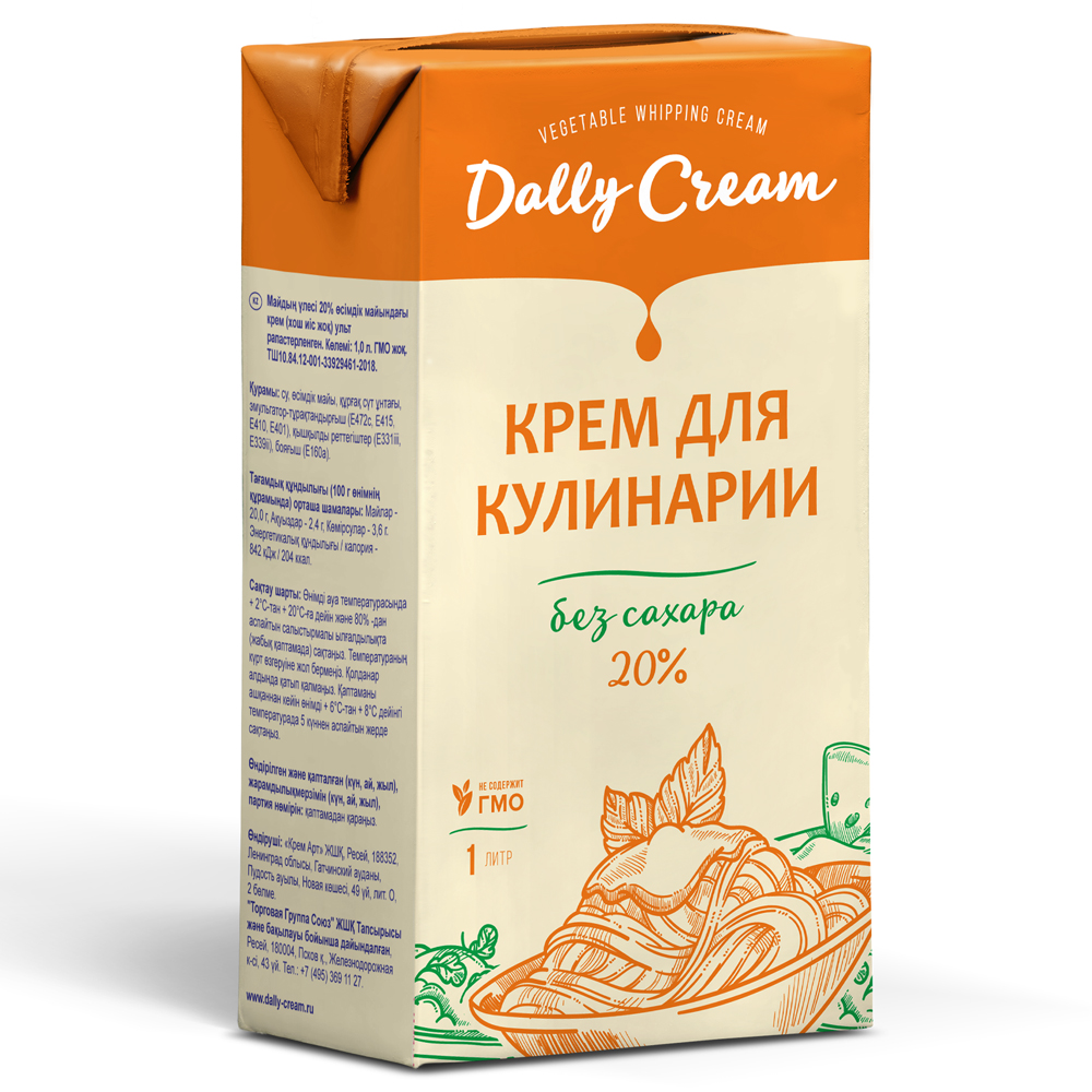 Сливки растительные 20% Dally изготавливаются из обезжиренного молока и натурального подсолнечного масла.
