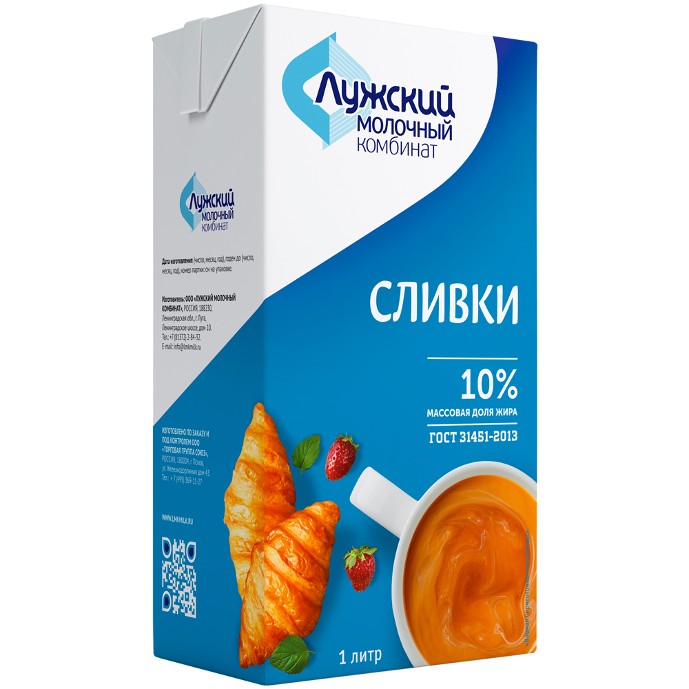 Сливки ультрапастеризованные 10% Лужского молочного комбината 1 000 г - 1704202112