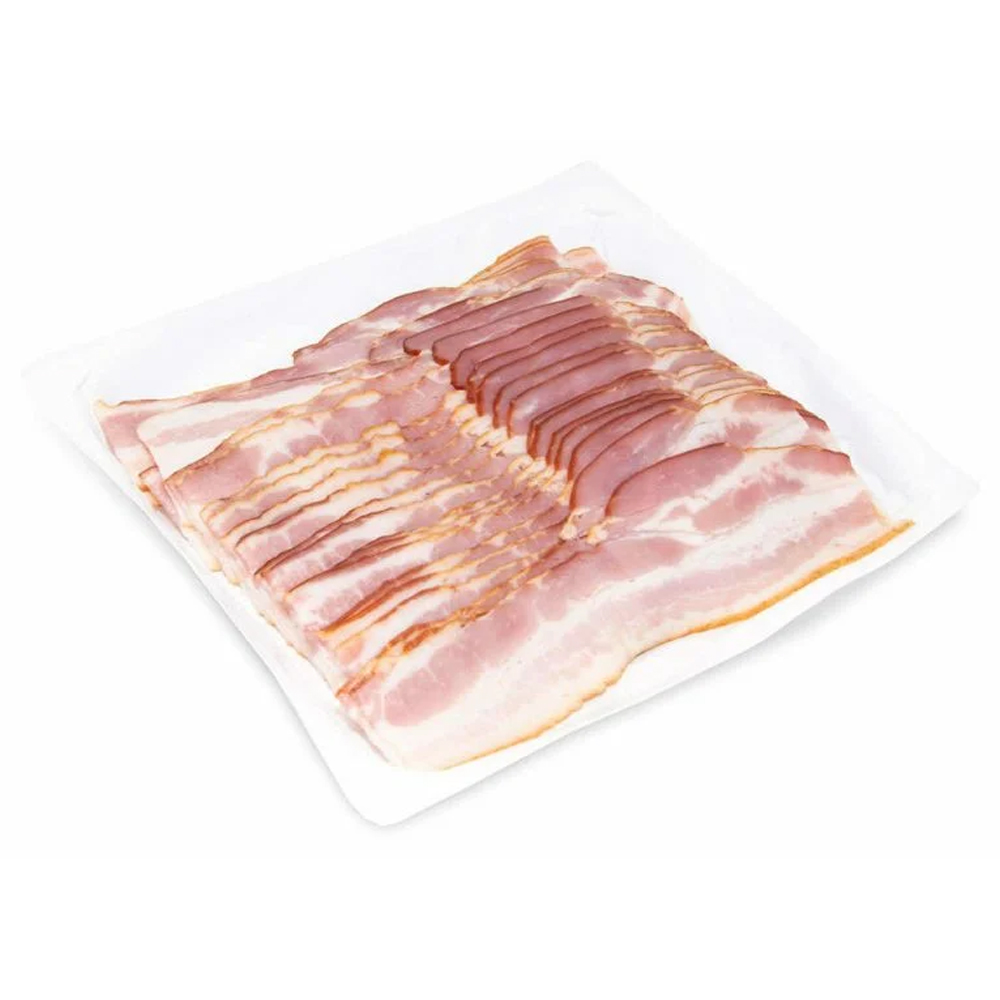 Бекон свиной варено-копченый Мясницкий ряд производится из отборного охлаждённого сырья. Обладает красивым срезом, отличается пряным мясным вкусом и легким оттенком копчения.