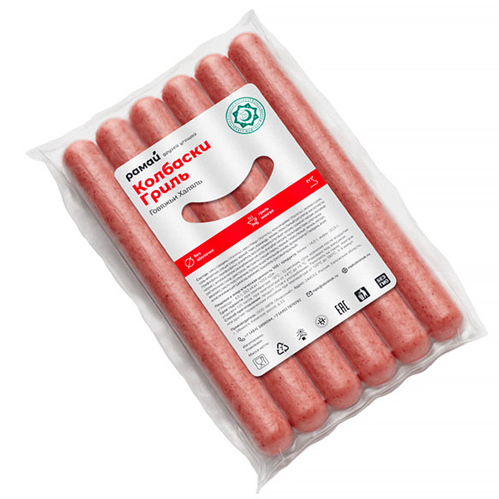 Колбаски для хот-дога говяжьи варено-копченые 80г (200 мм/ d 24 мм) 560г, Рамай Халяль зам. - 0519102045
