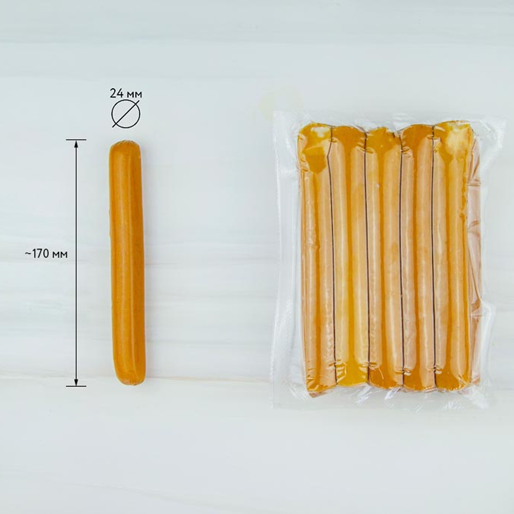 Сосиски для хот-дога куриные вареные 75г (170 мм/ d 24 мм) Чикен-спайси, 750г, зам.