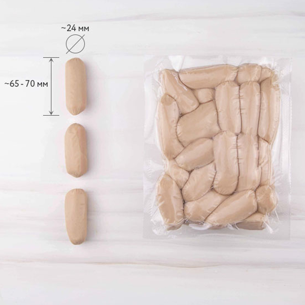 Сосиски мини курино-говяжьи вареные 25г (65-70 мм/ d 24 мм) ~1кг, зам.