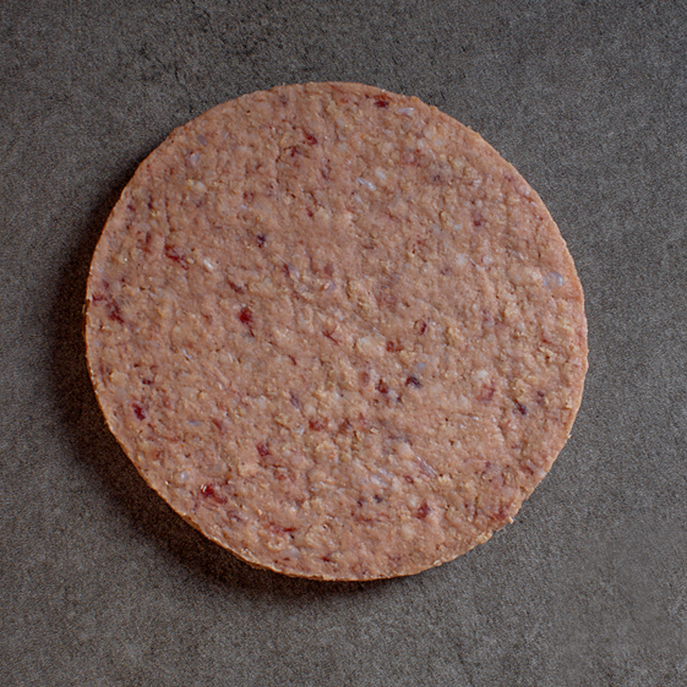 Состав: говядина 60%, жир-сырец говяжий, соевый белок, томатный кетчуп, сухари панировочные, пшеничная клетчатка, специи (лук, чеснок, перец), экстракт черного перца, пищевая соль, декстроза, сахароза, ароматизатор говядины идентичный натуральному; усилитель вкуса: Е621. Не содержит ГМО.
