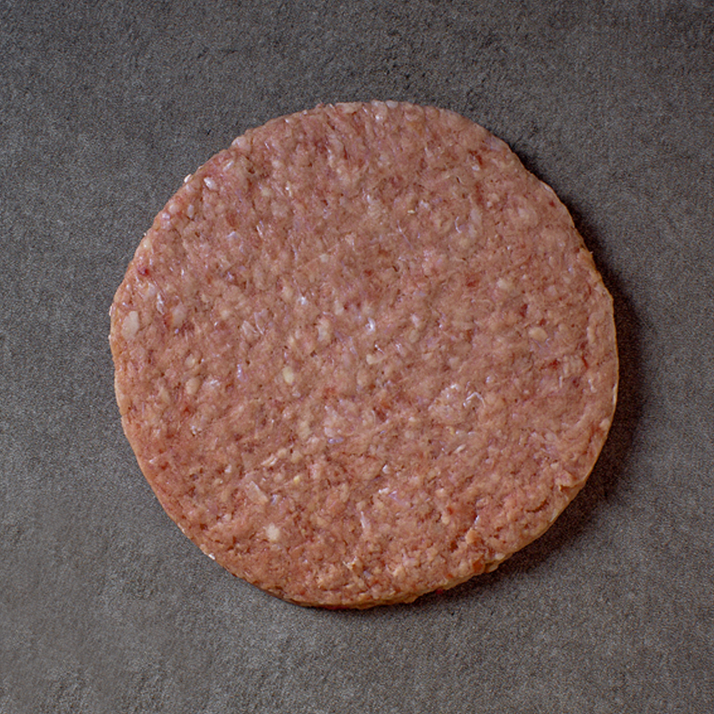 Состав: говядина, вода питьевая, жир-сырец говяжий, комплексная пищевая добавка «Омлюкс универсал» (яичный белок, смесь пищевых волокон, говяжий коллагеновый белок), пищевая соль, перец черный молотый. Не содержит ГМО.