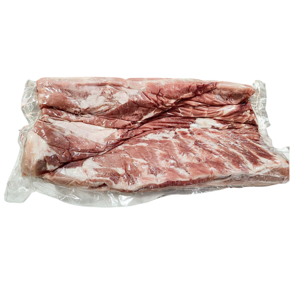 Свиную грудинку выделяют из грудино-реберного отруба свиной туши. Почти половину отруба составляет особо ценный легкоплавкий жир, а также, в отрубе присутствует несколько плоских мышц и соединительная ткань.