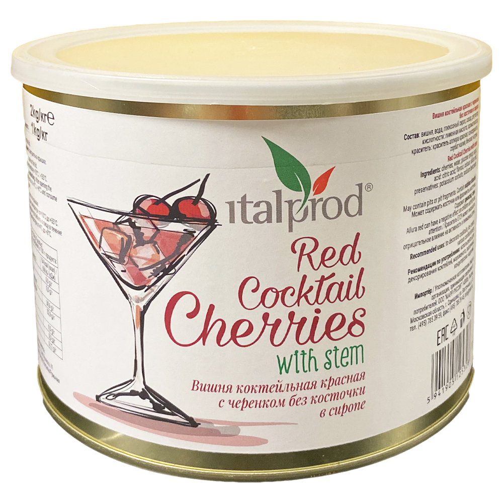 Вишня (черешня) коктейл. красная с черенком в сиропе Мараскино 2кг, Румыния - 25120478