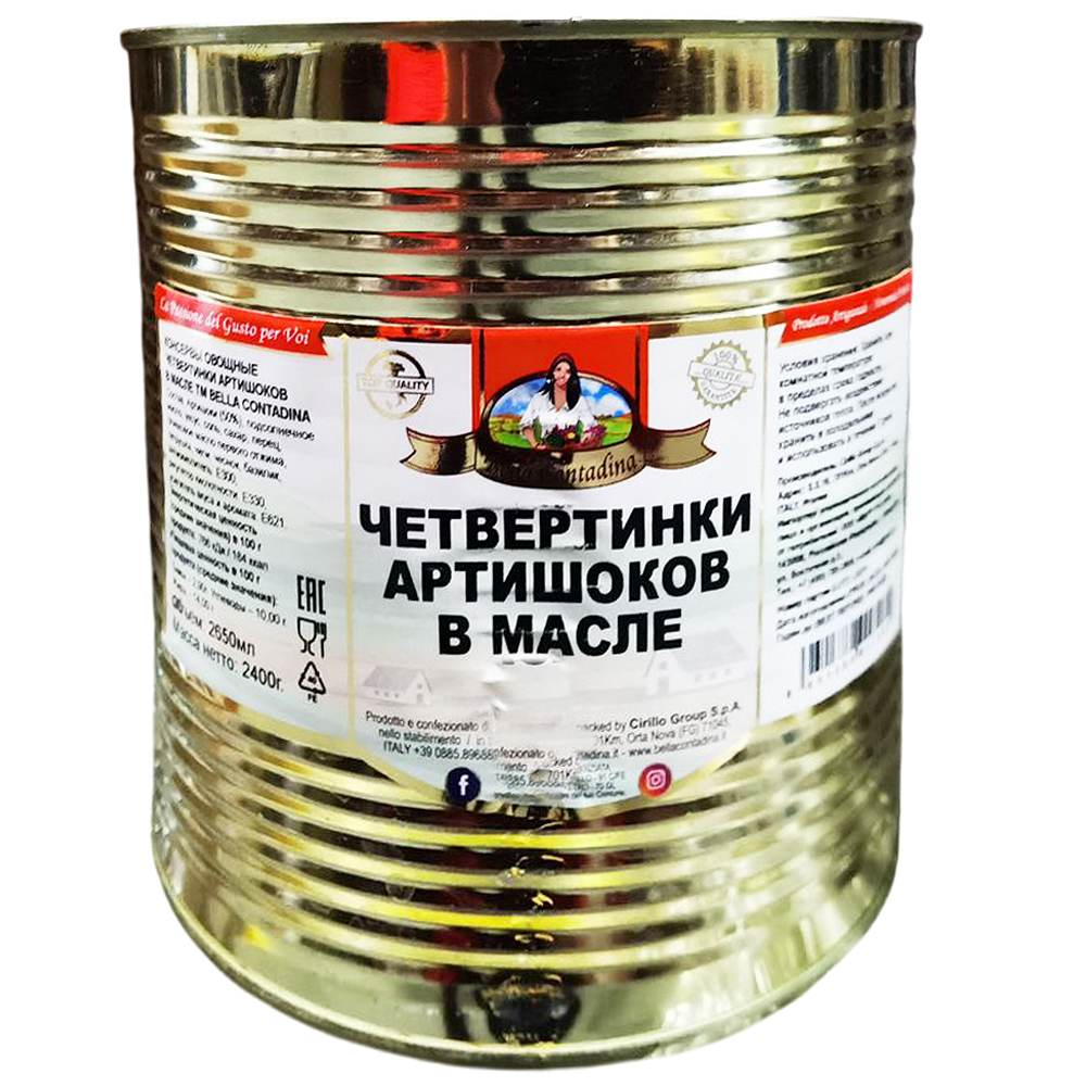 Артишоки четвертинки в масле со специями 2,4кг, Bella Contadina, Италия - 2504160316