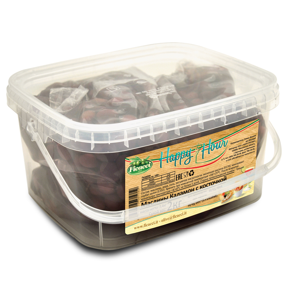 Маслины с косточкой Каламон калибр 180/200, 3,4кг, Ficacci, Италия