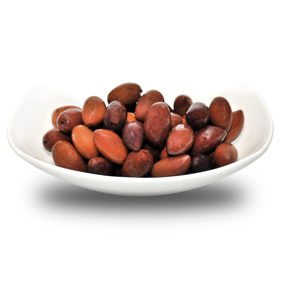 Маслины Каламон - самые популярные греческие оливки. Имеют цвет спелых ягод и средний размер; тонкую кожицу, а мякоть у них легко отделяется от косточки. Вкус маслин с косточкой Каламон неповторимый, насыщенный, с небольшой горчинкой.