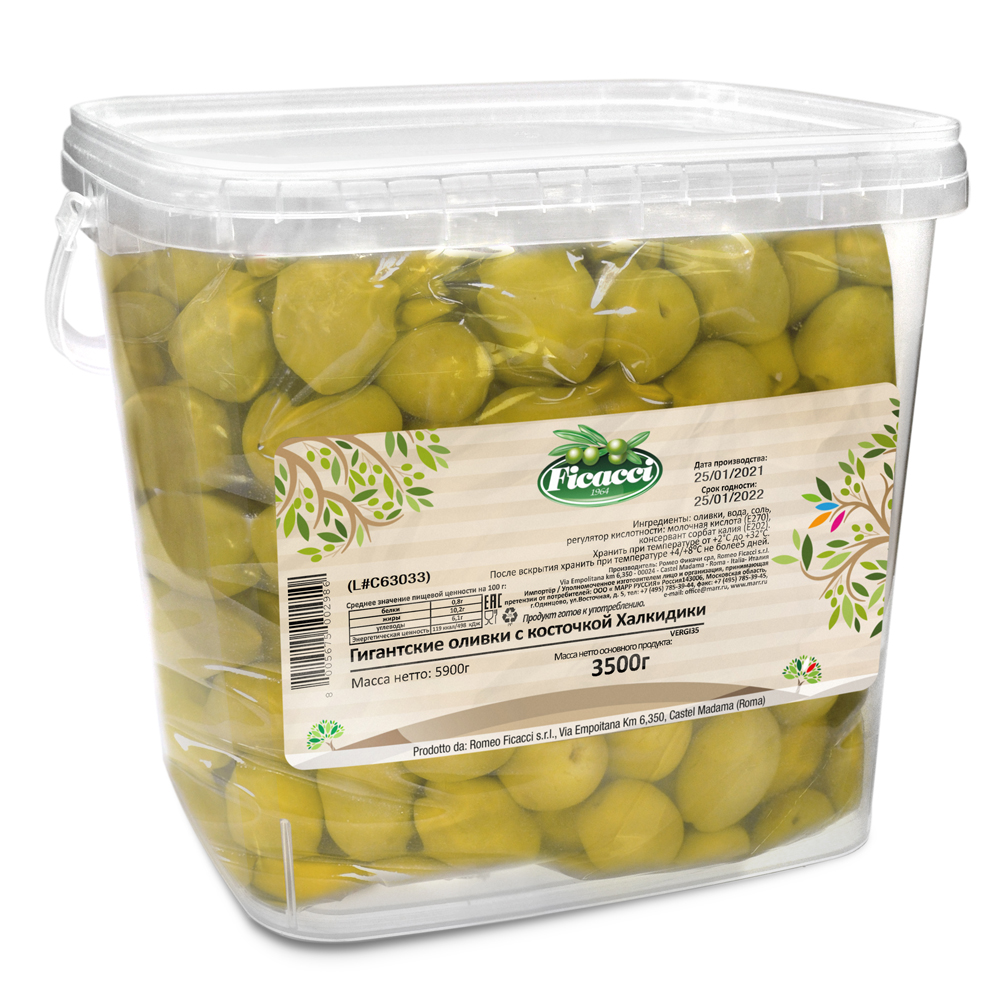 Оливки с косточкой Халкидики гигант 70/100, 5,9 кг, Ficacci, Италия - 25040857