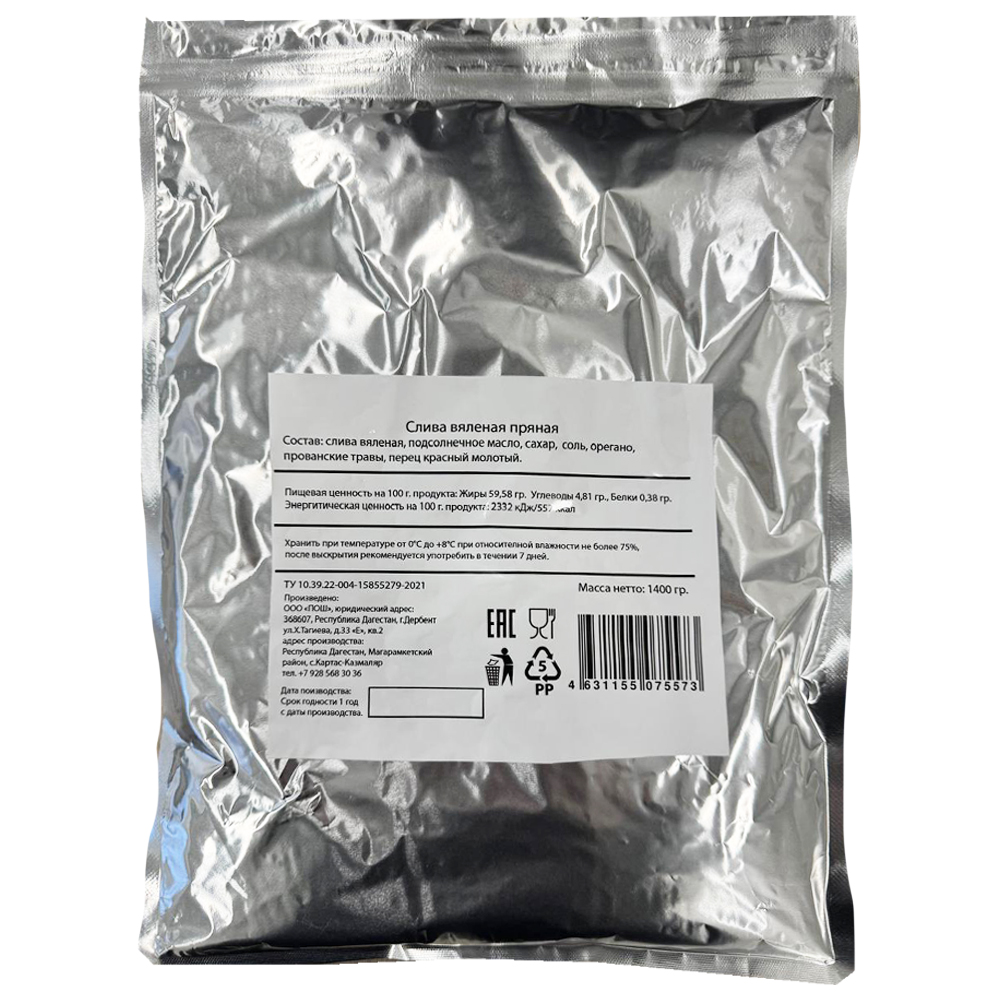 Состав: слива вяленая, подсолнечное масло, сахар, соль, орегано, прованские травы, перец красный молотый.