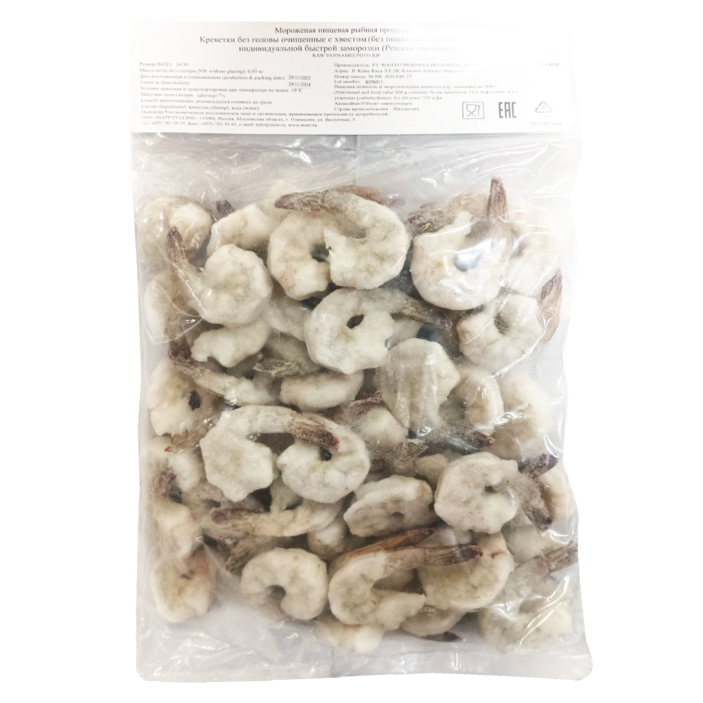 Креветки очищенные с хвостом без пищевода 26/30 - 1кг, Индонезия - 0903309928