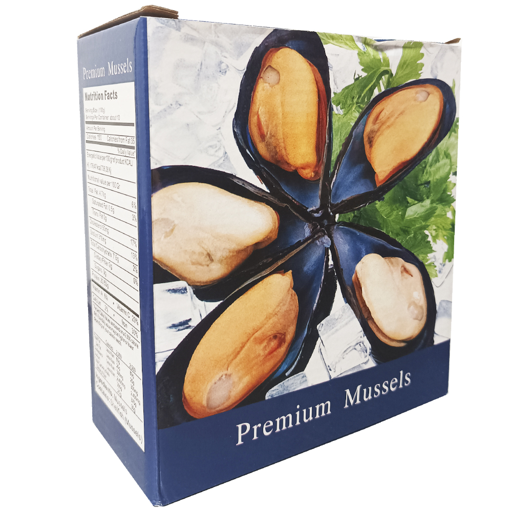 Мидии голубые в 1/2 раковины обладают нежным солено-сладким вкусом.