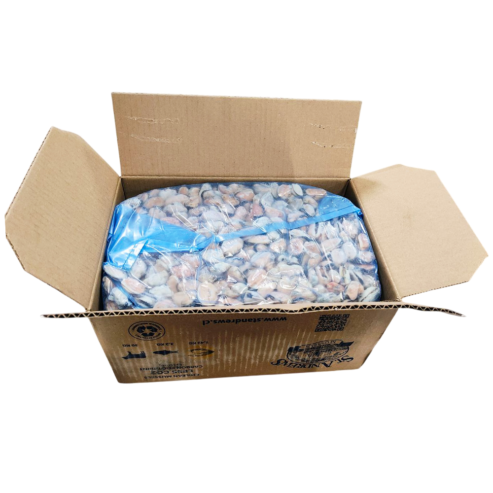 Мидии очищенные варено-мороженые 200/300 9,2кг (без глазури), Чили