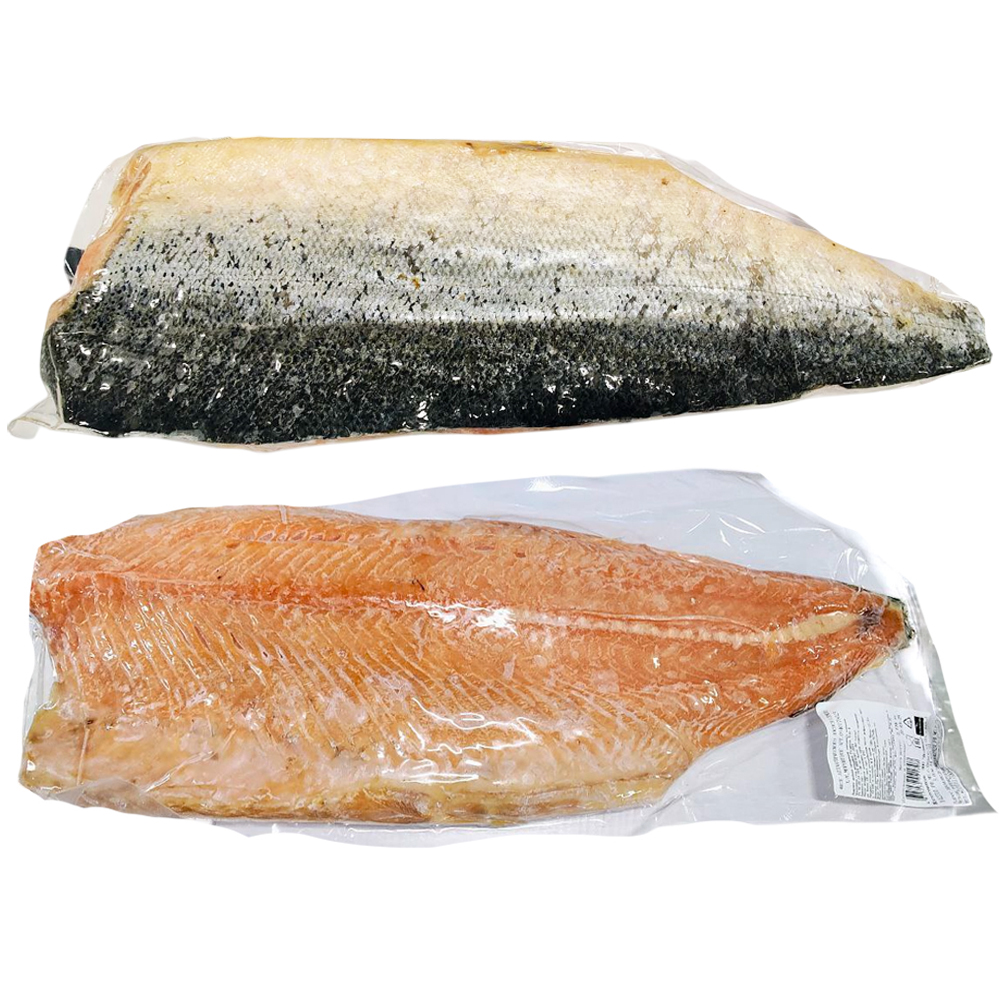 Филе семги холодного копчения на коже 1/2 тушки ТРИМ В 1,5-2,3 кг Пеликан зам.