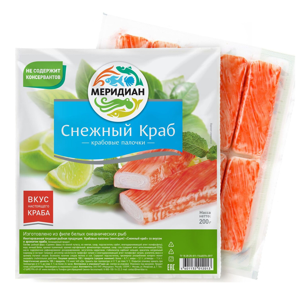 Крабовые палочки Снежный краб 200г Меридиан охл. - 09400811