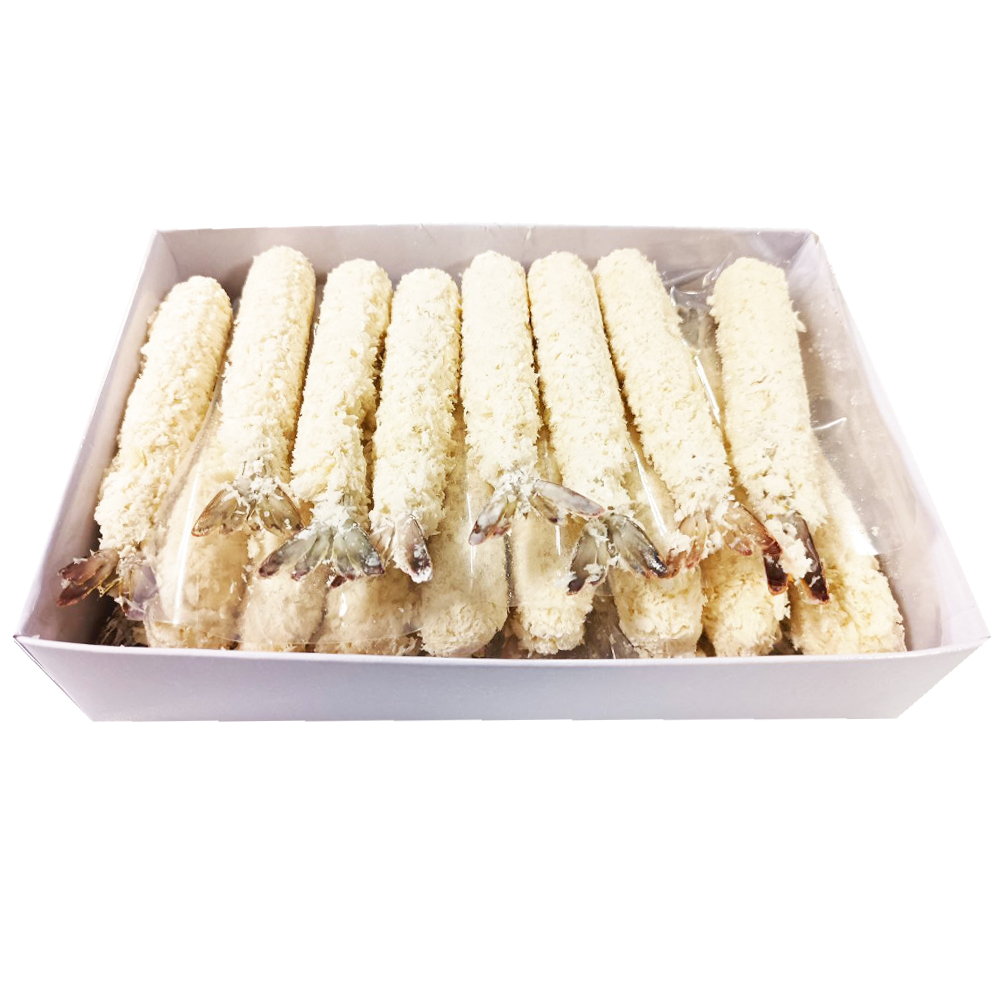 Продукт имеет нежную консистенцию и воздушную панировку. Вытянутая форма креветки придает больший размер порции при том же номинальном весе, что и обычная креветка в панировке.