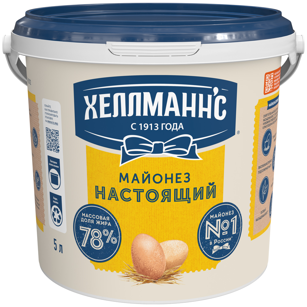 Майонез Хеллманн`с Настоящий 78% 5л (4,7 кг) - 1710541302