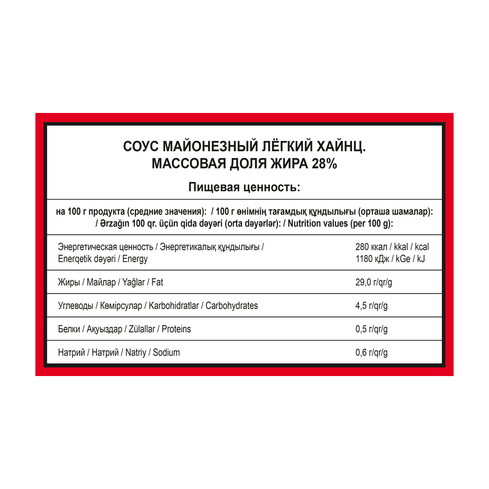 Соус Майонезный Легкий 28% Heinz 2кг - 3308560600