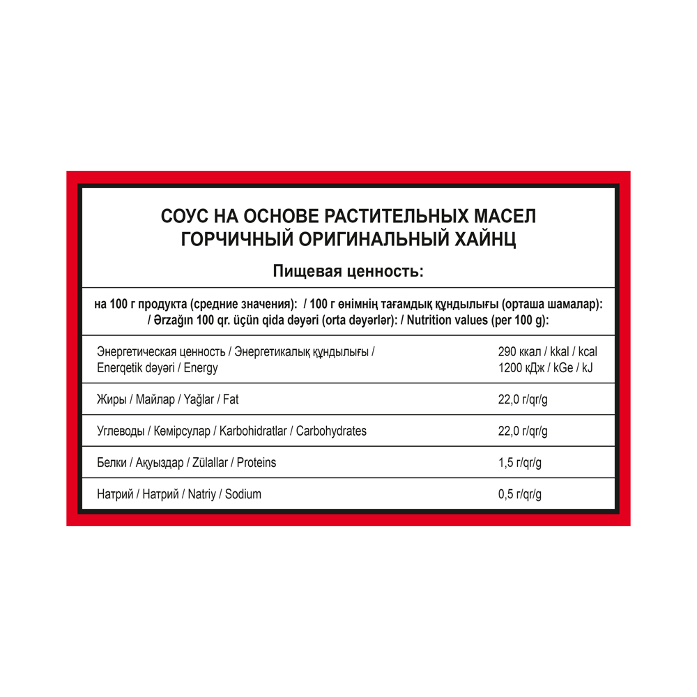 Готовый соус Горчичный Heinz из пряных семян горчицы и натуральных растительных масел ценят за нежную текстуру и традиционный пикантный вкус с лёгкими нотками карри.