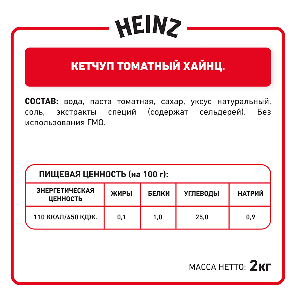 Купить готовый соус Томатный Кетчуп Хайнц можно в специальной упаковке балк для профессиональных кухонь ресторанов и отелей, кафе и баров. Балк 2 кг подходит для специальных дозаторов Хайнц — благодаря съёмным пакетам их удобно использовать при сервировке шведского стола и раздаточных линий, кейтеринга и корпоративного обслуживания. Формат балк для HoReCa обеспечивает максимальную гигиеническую защиту, реализацию продукта равномерными порциями и без потерь, удобное хранение, транспортировку и утилизацию.