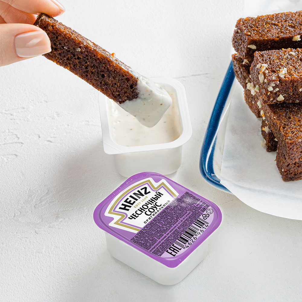 Купить соус Чесночный Хайнц можно в специальной порционной упаковке дип-пот, которая подходит для доставки готовой еды, шведского стола в ресторанах и отелях, раздаточных линий столовых и кафе самообслуживания, организации питания на выезде и в транспорте, кейтеринга и корпоративного обслуживания. Одноразовую упаковку дип-пот удобно хранить, транспортировать, использовать и утилизировать.