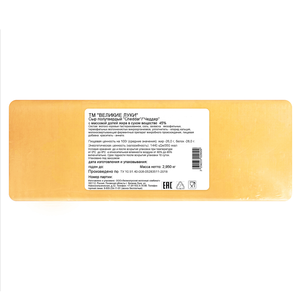 Чеддер 45% красный Великолукский ~3кг - 1420454011