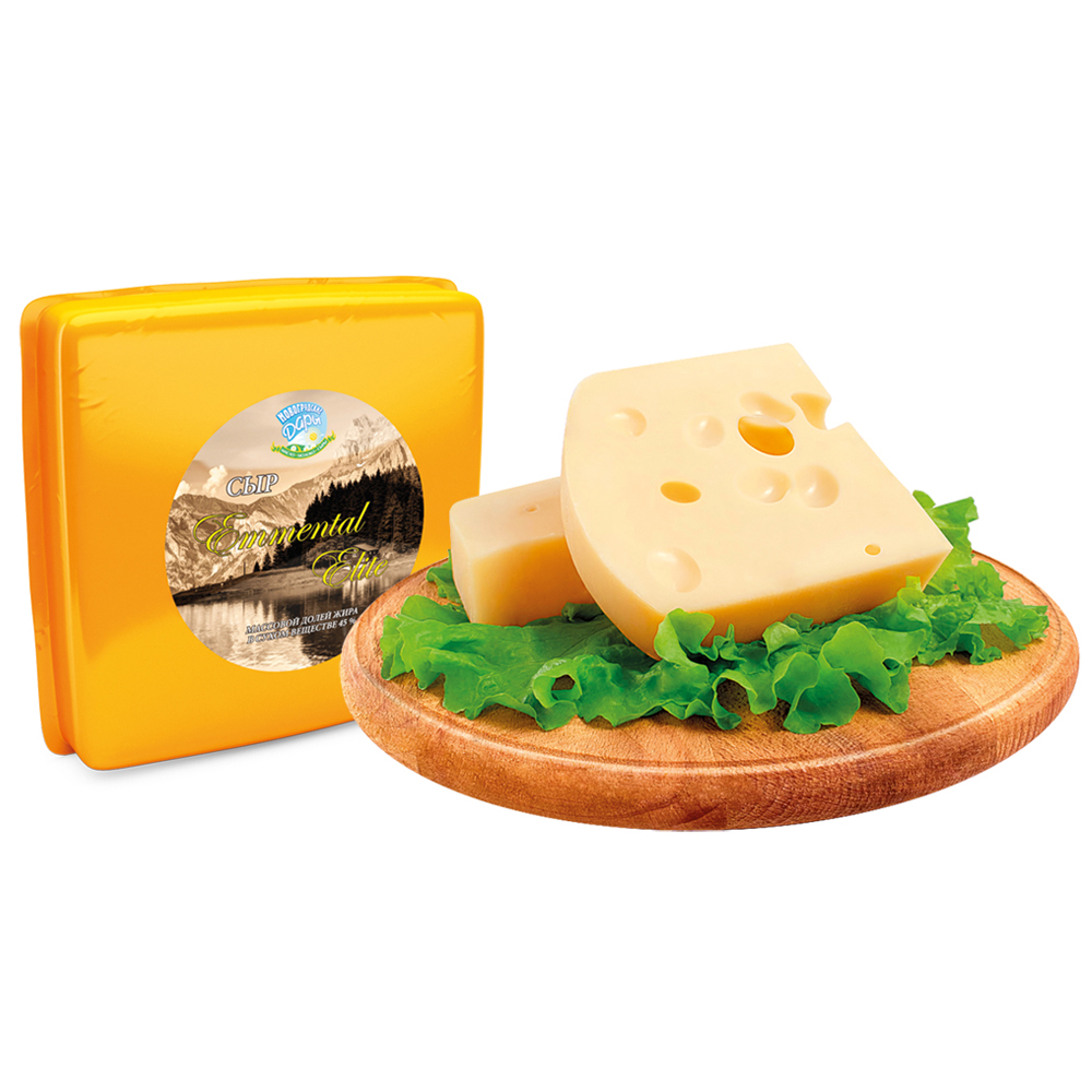 Эмменталь — знаменитый швейцарский сыр, с характерным сырным ароматом с лёгким оттенком орехов и острым пикантным вкусом, упругой структурой и большими глазками на срезе.