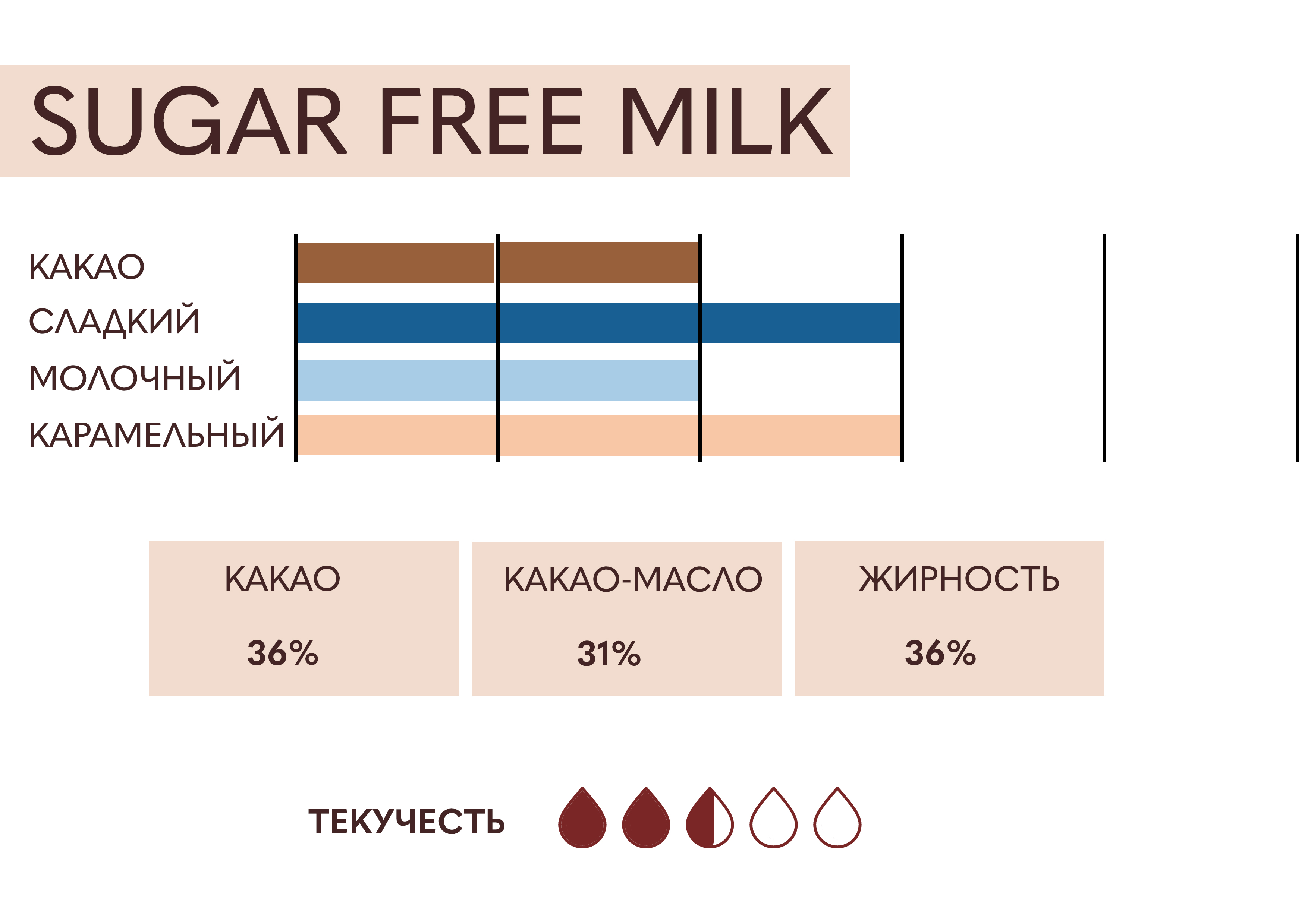 Какао 36%; какао-масло 31%; мальтитол 41%; жирность 36%.