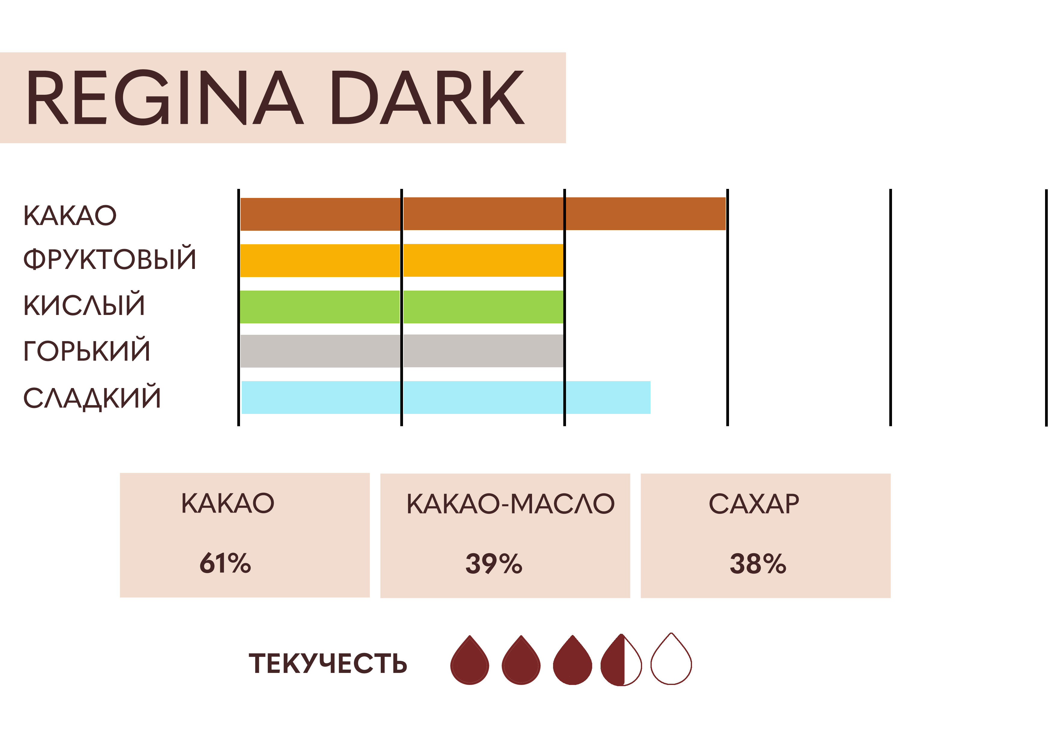 Функциональные свойства/преимущества: Высокое содержание какао-масла, тонкая текстура, отсутствие горечи.